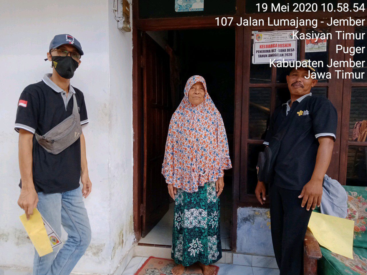 19/05. Selasa di pertengan bulan Kades Kasiyan timur merealisasikan KPM penerima BLT DD kepada warganya dengan mendatangi langsung kerumah masing masing warganys untuk menghindar kerumunan yang mana sesuai petunjuk protokoler kesehatan dalam menghindari keramaian. dalam merealisasikan Bantuan, Realisasi Bantuan ini Pemdes Kastim juga mengadeng Mitra Yaitu Bank BRI Kc. Kasiyan. Untuk turut andil dalam merealisasikan bantuan langsung, yang mana diwakili dua petugas dari BRI untuk datang ke masing masing Rumah warga bersama Kades dan Tim Satgas Covid 19 yang turut mengawal proses realiasasi ini,” Bapak Hariyanto selaku kades Kasiyan Timur bahwa akan memastikan proses penyaluran ini sesuai prosedur dan betul betul KPM miskin yang terdampak oleh adanya pandemi ini, saya pastikan bahwa penyaluran insllah sudah sesuai amanah pemerintah pusat sehingga tidak ada lagi masalah dikemudian hari, saya bersetrimakasih kepada warga sebelumnya tetang masukan masukan bagi calon penerima bantuaan, saya pastikan penerima bantuan ini BLT DD ini sudah sesuai dengan masukan dari para RT dan TIM satgas bentukan Desa untuk membantu merealisasikan bantuan ini’Ucapnya” sebelumnya bantuan BLT ini dilakukan di Pendopo Balai Desa pada minggu lalu sehingga tahapan terahir yaitu pada hari ini. dari info Kasi kesra bahwa dibulan ini warga Kasiyan Timur juga menerima bantuan lain yang bersumber dari Non DD, yaitu BPNT, dan PKH yang diwakili masing masing mitra yang ditunjuk pmerintah pusat,