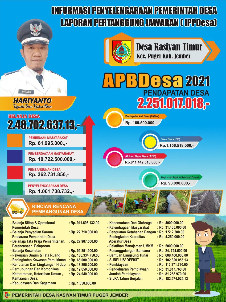 BerandaKabar DesaKabar DesaLingkunganInformasi Penyelangara Pemerintah Desa Desa Kasiyan Timur ( IPPDdesaBy Operator DesaApril 19, 20220407FacebookTwitterPinterestWhatsApp Pemerintah Desa kasiyan Timur memasang benner papan informasi untuk tranpransi Desa untuk tahun 2021, yang mana publikasi ini wajib bagi setiap desa untuk menginformasikan pengunaan anggaran selama setahun.BagikanFacebookTwitterPinterestWhatsApp Artikulli paraprakPEMERINTAH DESA KASIYAN TIMUR REALISASIKAN BANTUAN BLT -DD TAHAP 1Artikulli tjetërPEMERINTAH DESA REALISASIKAN BANTUAN BLT DD BULAN APRIL KEPADA KPM PENERIMA BANTUAN DARI DESAOperator DesaRelated Articles Kabar DesaKEPALA DESA KASIYAN TIMUR NGOPI AKHERAT DI LAP SADENG SONGO Kabar DesaPERCEPATAN PEREKAMAN E-KTP PEMULA KECAMATAN PUGER PertanianCara mudah membuat Pupuk organik cair TINGGALKAN KOMENTAR Batal membalasKomentar:Silakan masukkan komentar anda! Nama:*Silakan masukkan nama Anda di sini Email:*Anda telah memasukkan alamat email yang salah!Silakan masukkan alamat email Anda di sini Website: Simpan nama, email, dan situs web saya di browser ini untuk lain kali saya berkomentar. Stay Connected0FansSuka3,912PengikutMengikuti0PelangganBerlangganan- Advertisement -Latest Articles Kabar DesaKEPALA DESA KASIYAN TIMUR NGOPI AKHERAT DI LAP SADENG SONGO Kabar DesaPERCEPATAN PEREKAMAN E-KTP PEMULA KECAMATAN PUGER PertanianCara mudah membuat Pupuk organik cair EkonomiPEMDES KASIYAN TIMUR BAGIKAN BLT-DD TA.2024 Kabar DesaPEREKAMAN E KTP BAGI PEMULA DI SMA/SMK DI KECAMATAN PUGERMuat lebih banyak